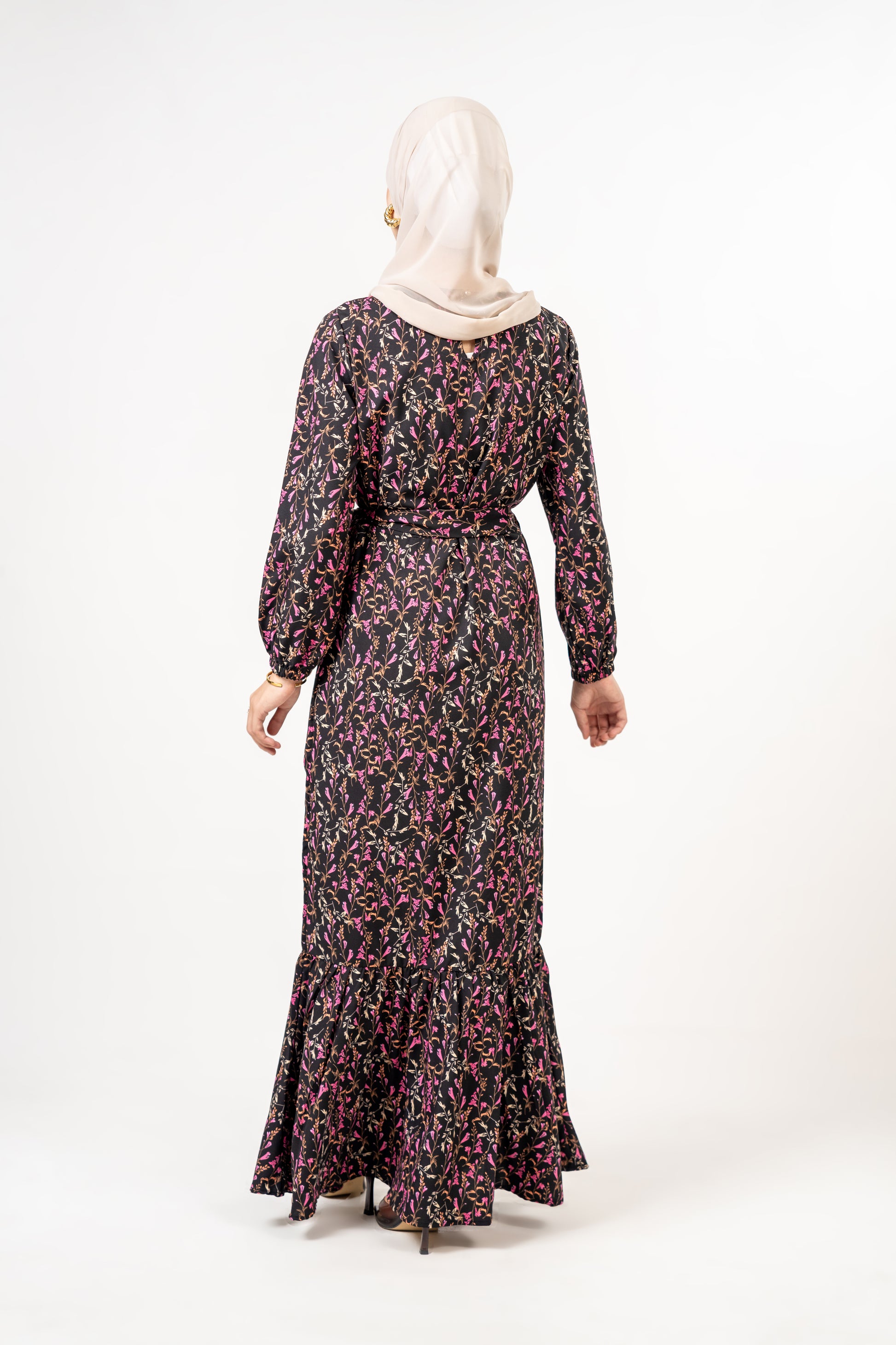 53 inches in length. Model is a UK4. She's wearing UK8 in the pictures. The belt is detachable. It's recommended to go one size up as the dress has a fitted form and may get tight around the hips and thigh areas. The waist can be adjusted with the belt